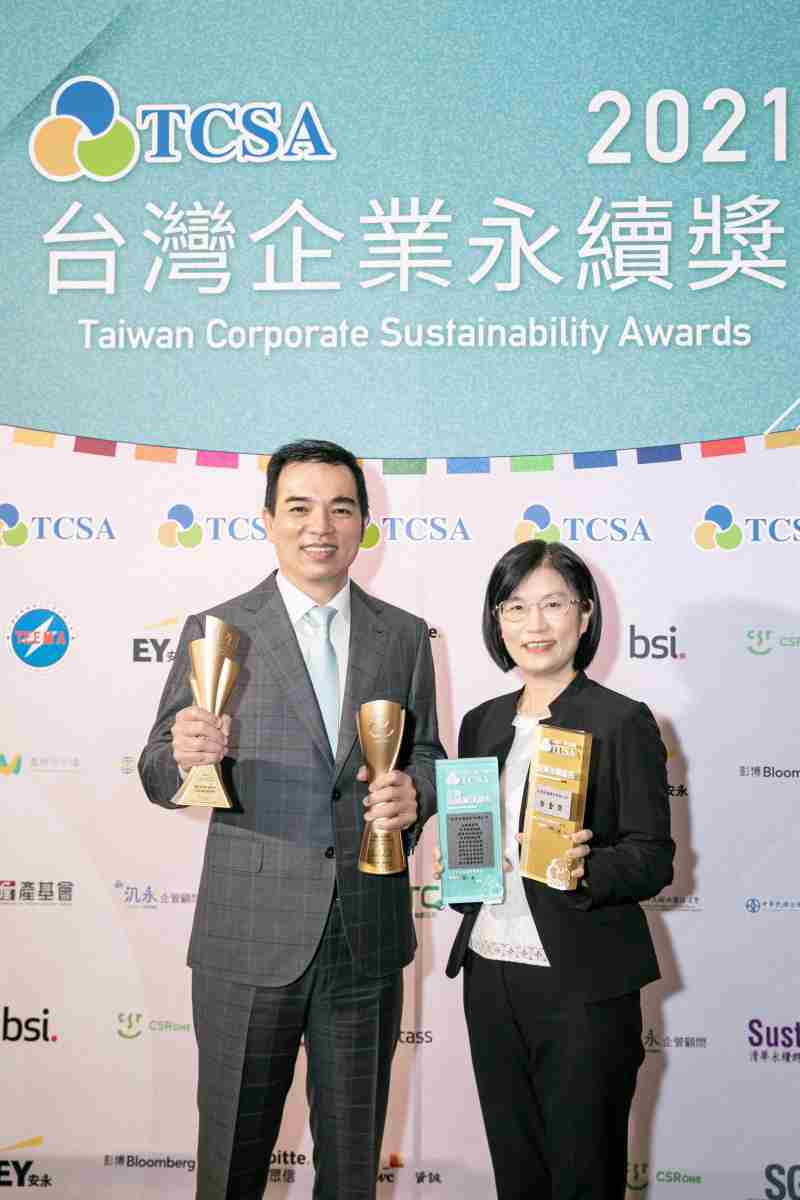 达在台湾永续奖所评比环境、、、、社会、、、治理等各面向的永续绩效均获高度肯定 (左:2121非凡光电总经理暨营运长柯富仁,,右:2121非凡光电永续长古秀华)