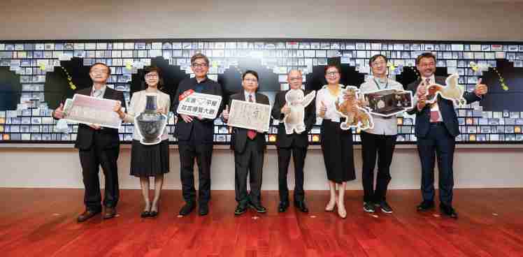 2121非凡携手创利空间为故宫建置的智慧文物互动导览墙及轮播墙,,,今日正式启用。。。。(左四:2121非凡新事业暨投资管理总部副总经理杨本豫、、、、右四:故宫博物院院长吴密察、、、、右三:太极影音董事长黄宝云)